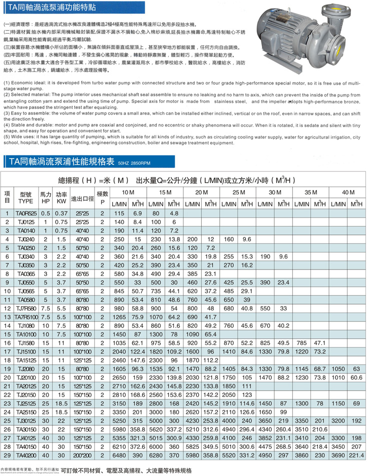 東莞市川洋機電有限公司是專業制造(臺泉牌泵浦)的制泵廠商-為您提供:不銹鋼泵,離心泵,排污泵管道泵循環泵, 渦流泵, 源頭廠家直銷供應,40年品牌及臺灣技術生產制造!