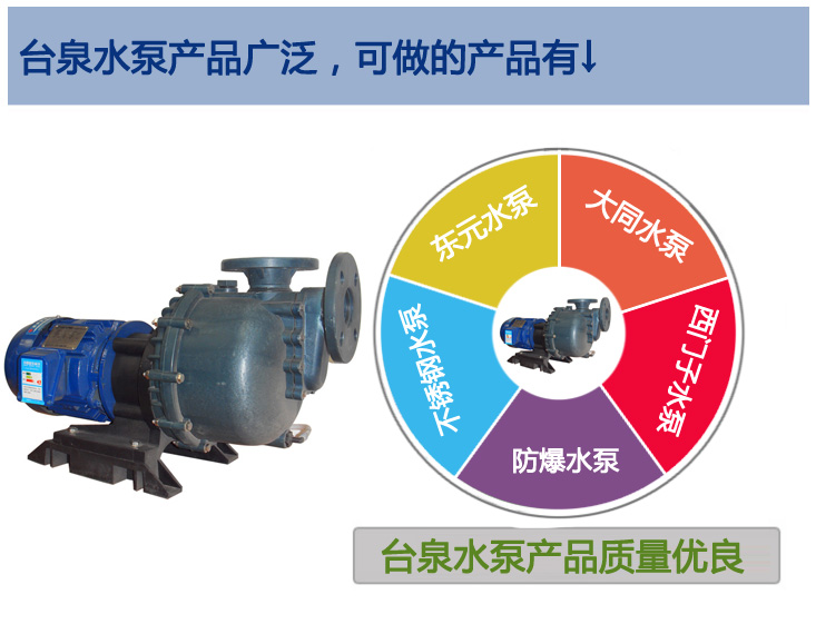 臺泉耐酸堿自吸水泵,也叫“大頭泵”“馬肚泵”同軸耐酸堿自吸泵適用與所有含酸堿腐蝕性液體的化工,污水抽送與排放。水泵廣泛使用于電渡、涂裝、化工、PCB線路板、環(huán)保設備等方面。